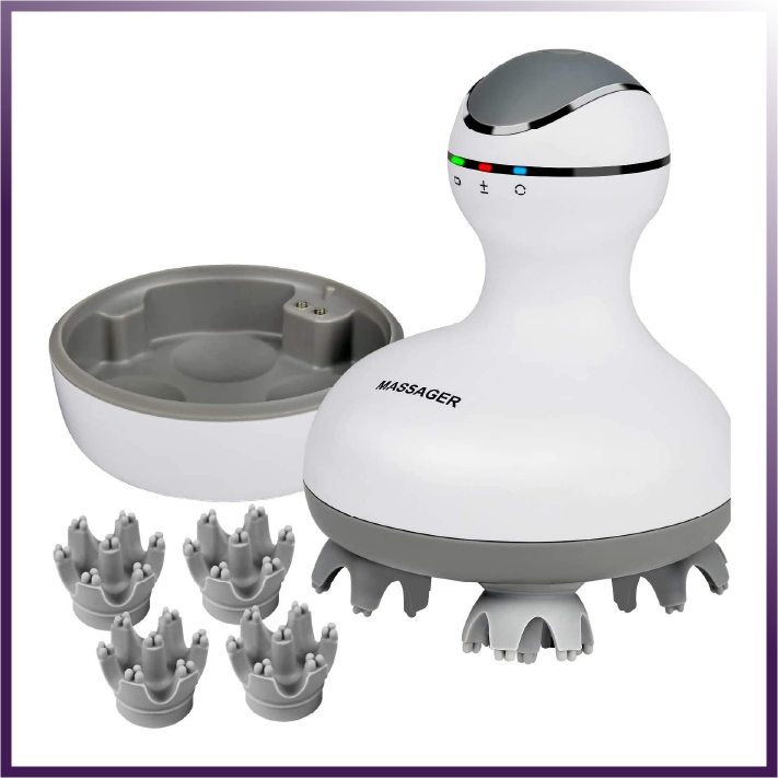 - WATERPROOF & SKIN-FRIENDLY: The electric head massager is made from IPX-7 Waterproof material, allowing you to use it during the shower for a proper scalp massage, relaxing thoroughly with 4-mode tension like a physical therapist. The eco-friendly soft silicone heads prevent hair from being pulled or tangled and do not hurt your skin, making it safe for all skin types. The massage nodes are detachable for easy cleaning.